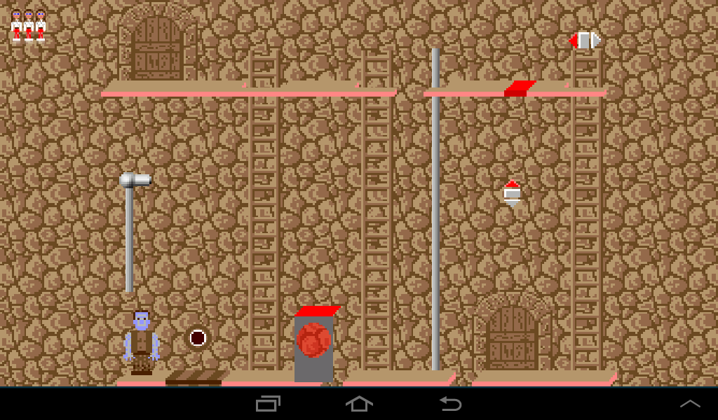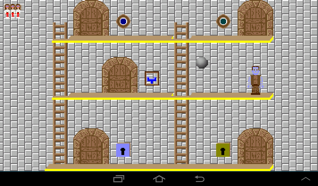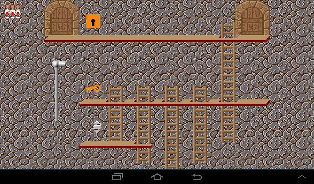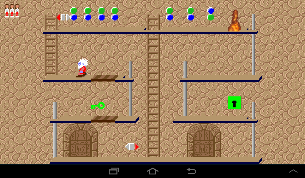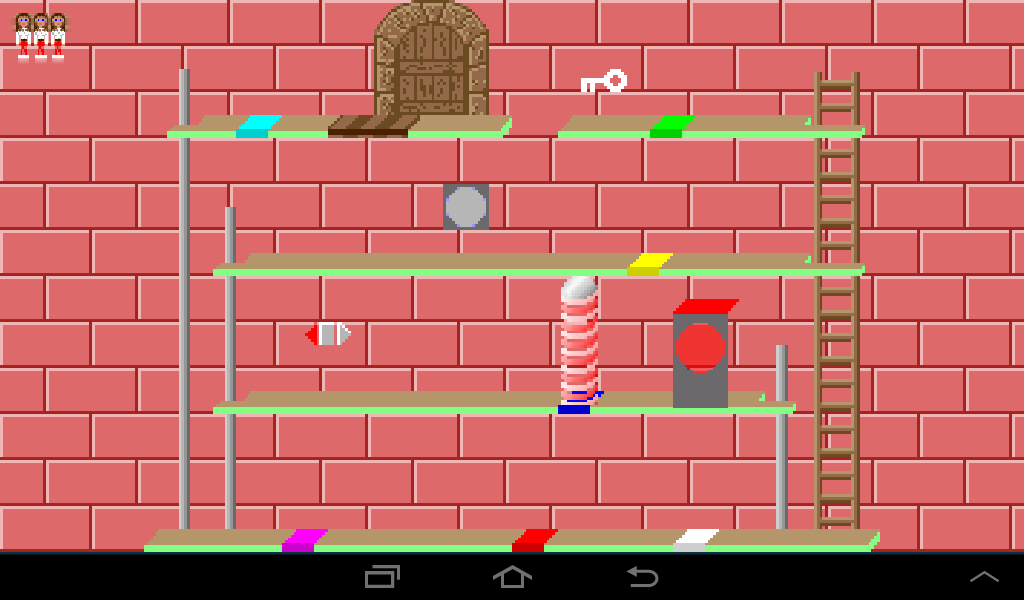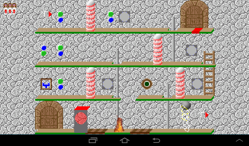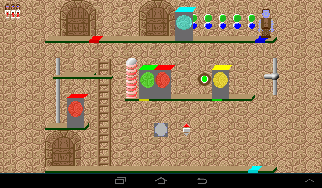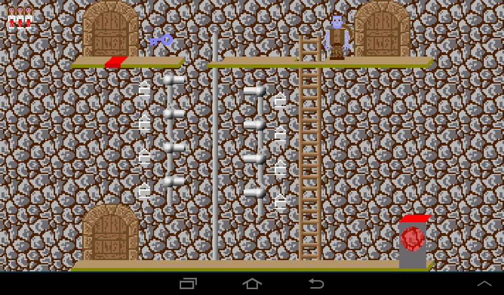Coming from the left, lure the dwarf to the left ladder and once he climbs up leave the room through the right gate.