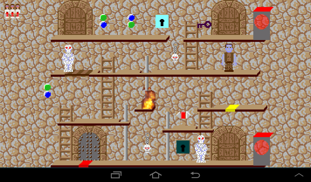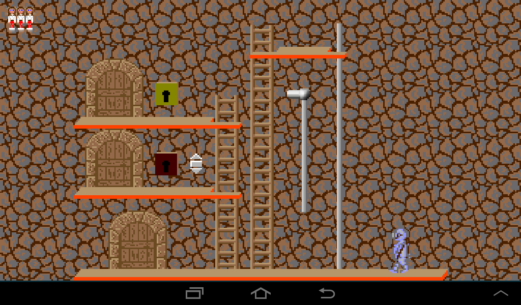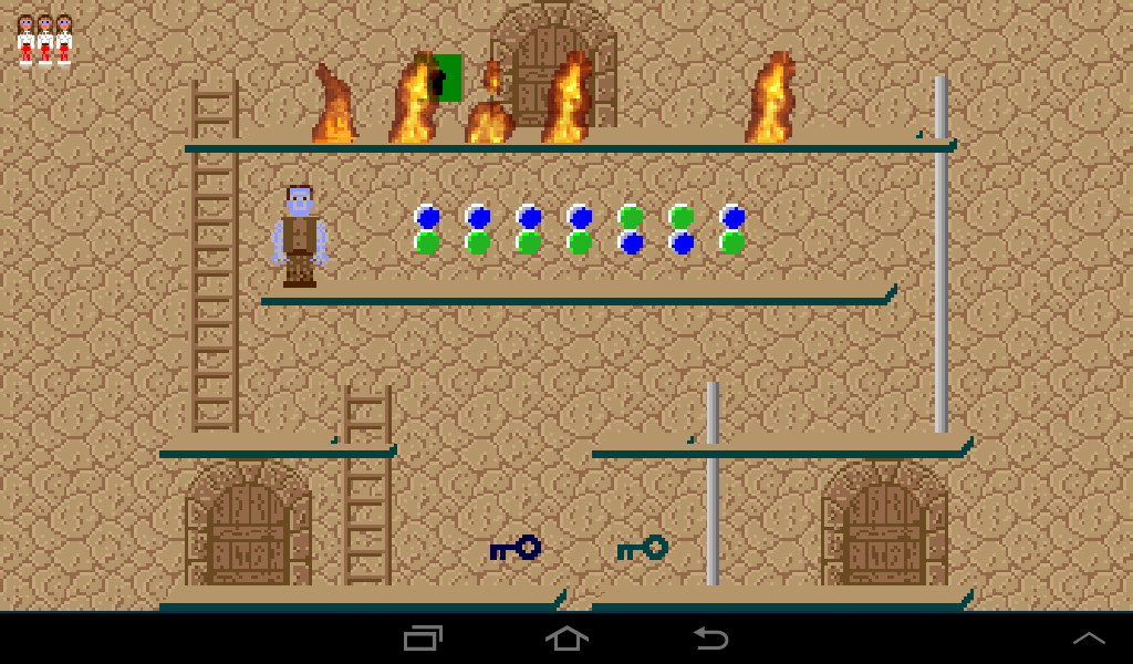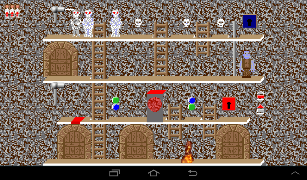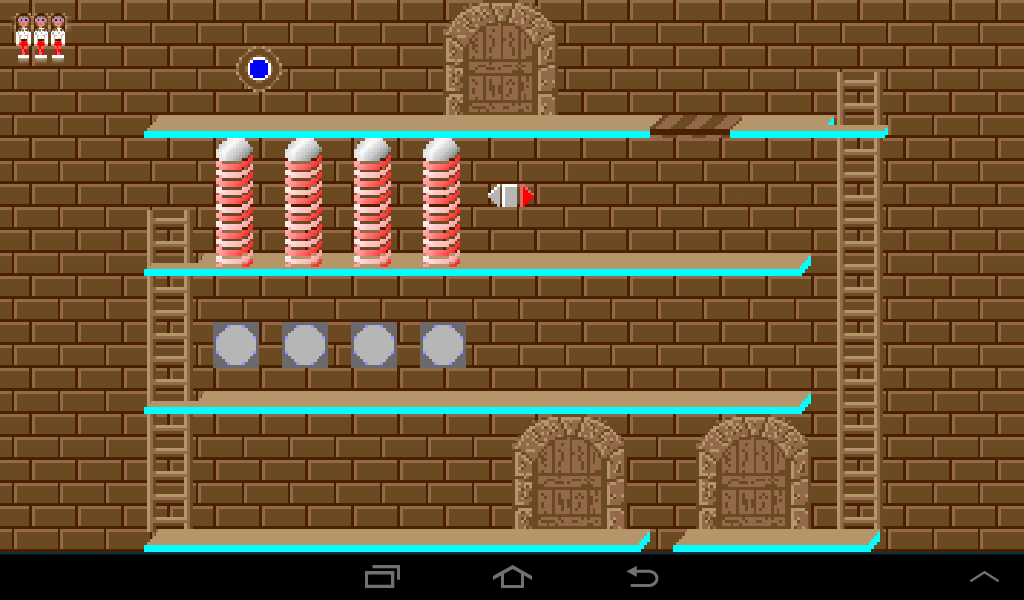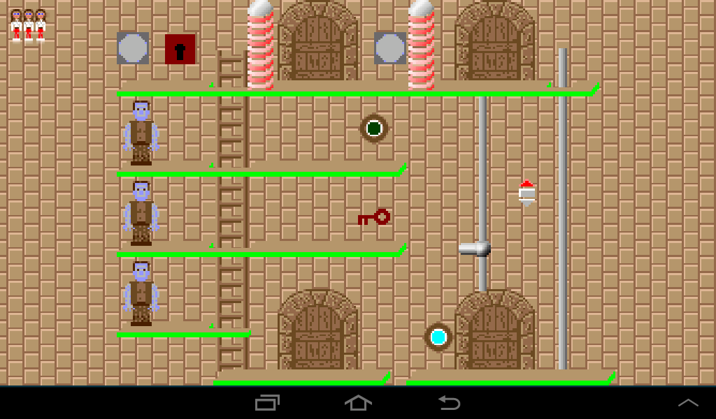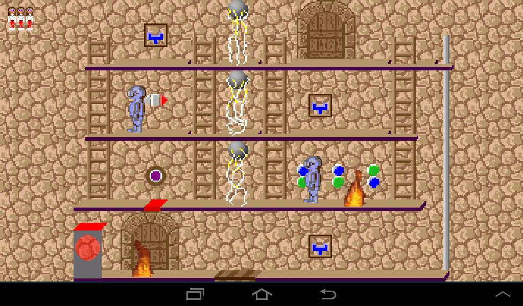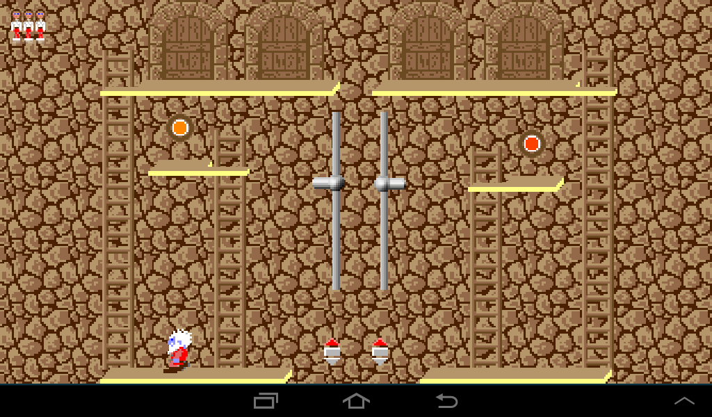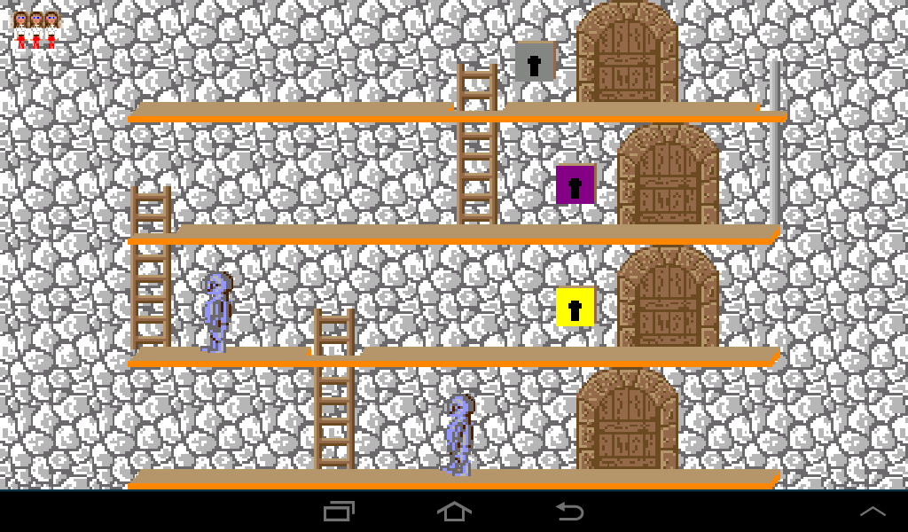 Coming from the left, lure the dwarf to the left ladder and once he climbs up leave the room through the right gate.